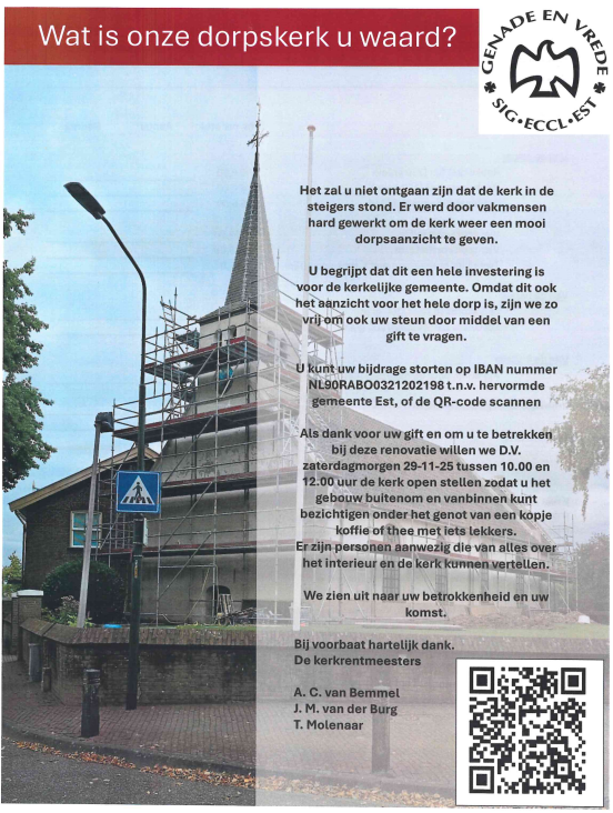 Achter de schermen wordt er druk gewerkt aan het vernieuwen van de website van de kerk van Est. Een tweetal gemeenteleden zijn bezig om de website te voorzien van een nieuwe uitstraling en te vullen met informatie over de hervormde gemeente van Est.